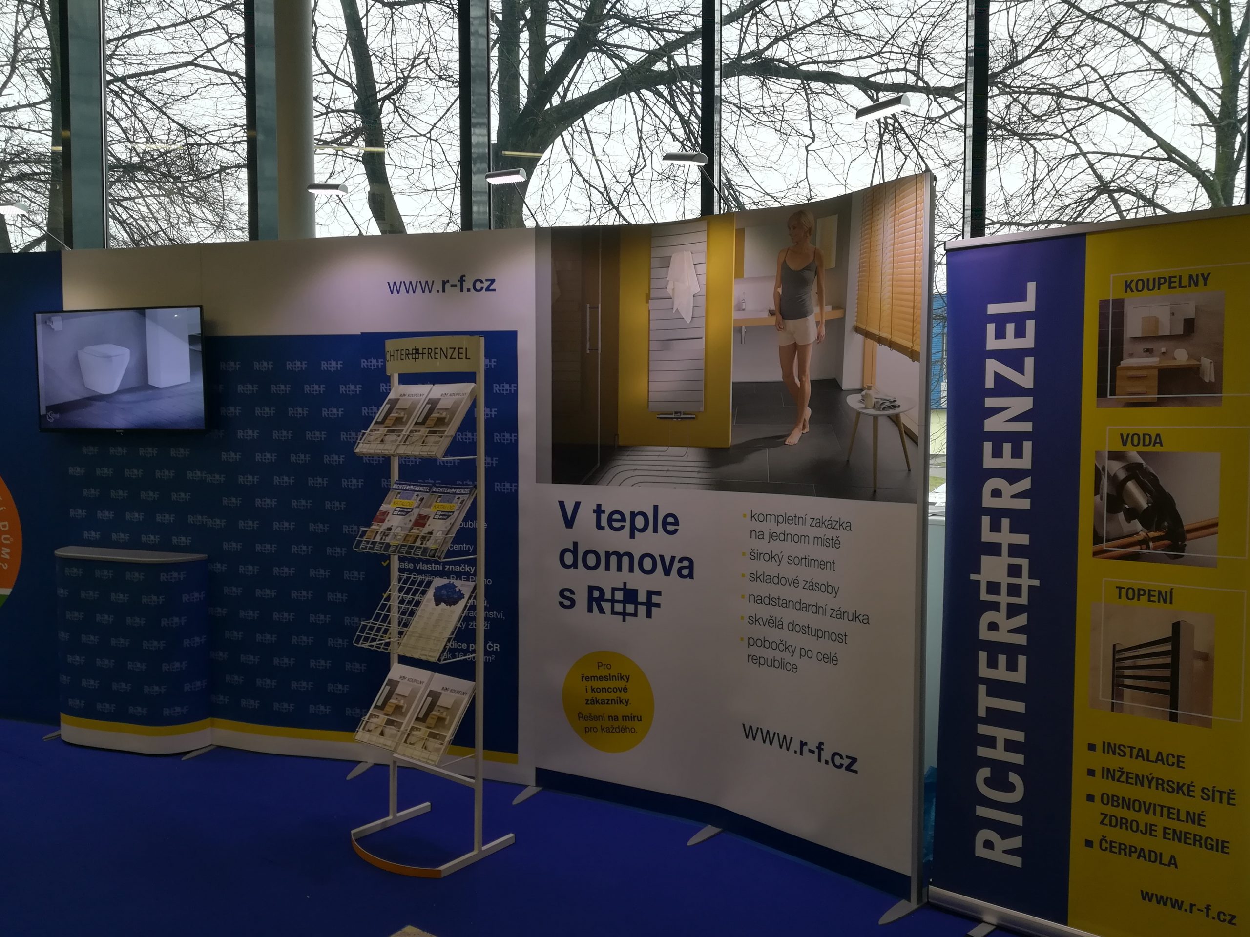 Jak už jsme zmínili na začátku, Richter+Frenzel s.r.o. se prezentoval na této významné události již podruhé. Premiéru jsme si odbyli v minulém roce. Spolu s námi letos vystavovali naši obchodní partneři (KERMI a RPR WTERM), kteří byli v dispozicích našeho stánku zakomponováni. První zmíněný se soustředil především na prezentaci deskových otopných těles a podlahového vytápění, zatímco WTERM spíše na ohřívače vody a elektrokotle.